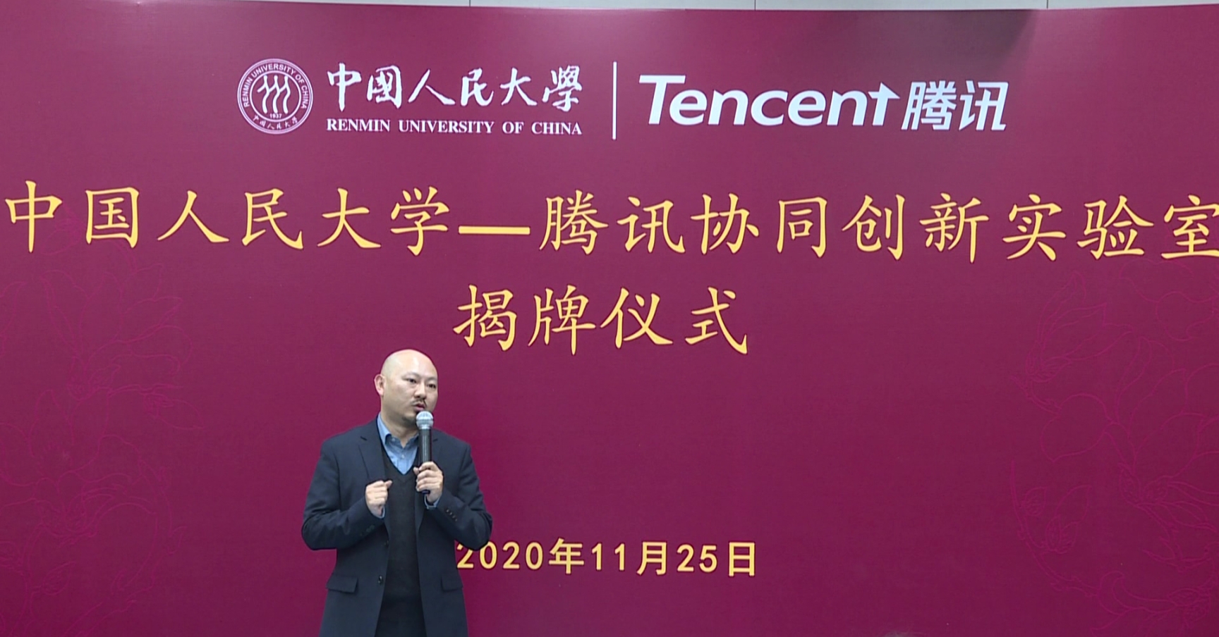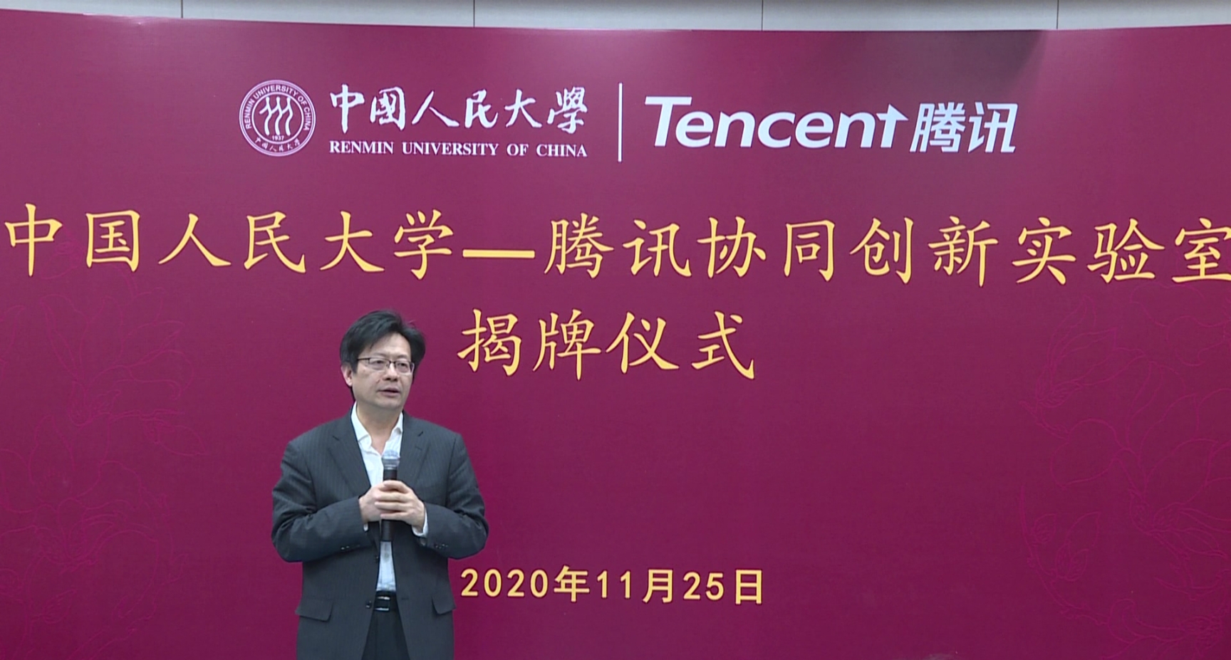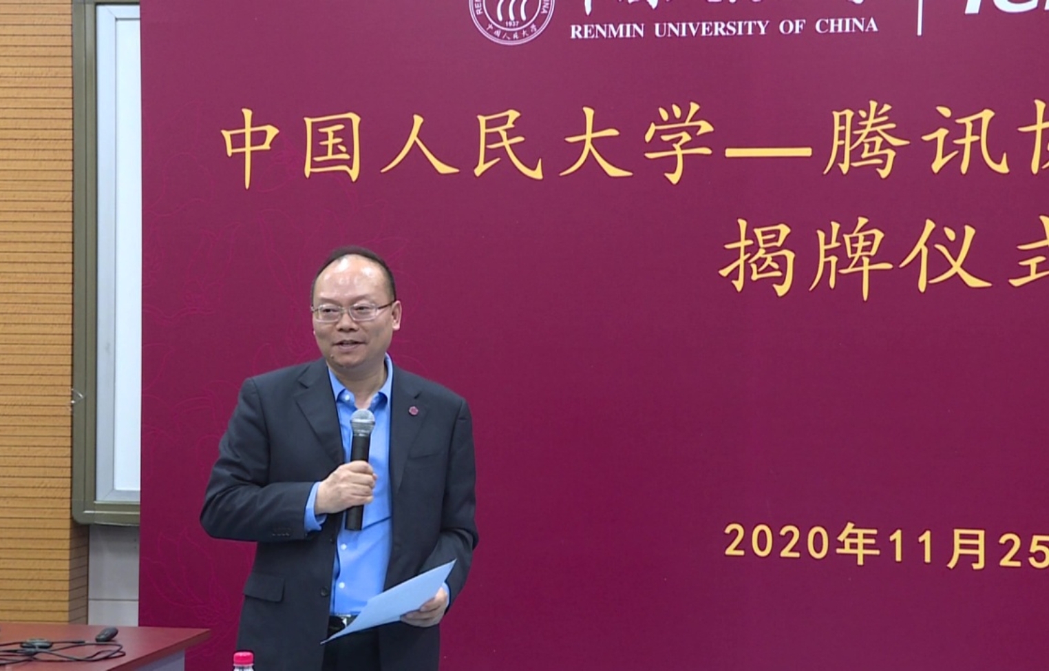 11月25日下午,中国人民大学—腾讯协同创新实验室揭牌仪式在信息楼四层学术报告厅举行。